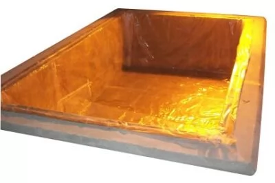 9. Place another layer of PVC sheet on the pit base and the side walls joints sealed with adhesive tape.