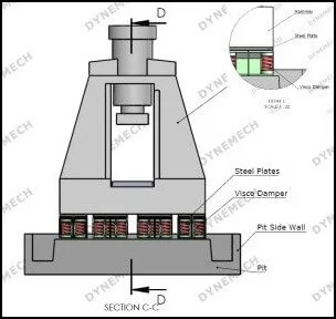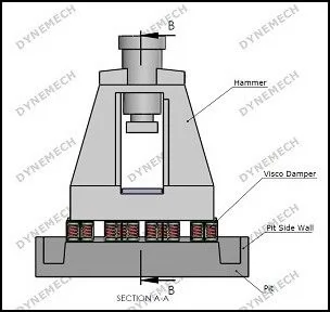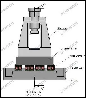Restrictions in available area for the machine’s foundation inertial mass slab, besides easier and quicker installation of hammer, and guidelines for vibration control also necessitates the use of Viscous Damped Spring Vibration Isolators.