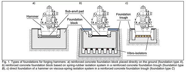 Forging Hammers, Punching machines, Metal Forming Presses and other types of shock producing machines generate powerful short-period impact loads, characterized as shock pulses. Only a part of the shock energy is utilized in the intended hammering, punching, pressing, shaping operations and the rest is dissipated in the foundation causing intense vibration.